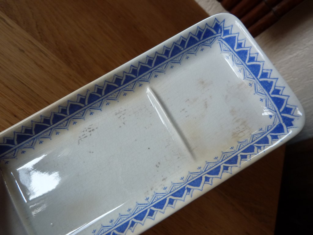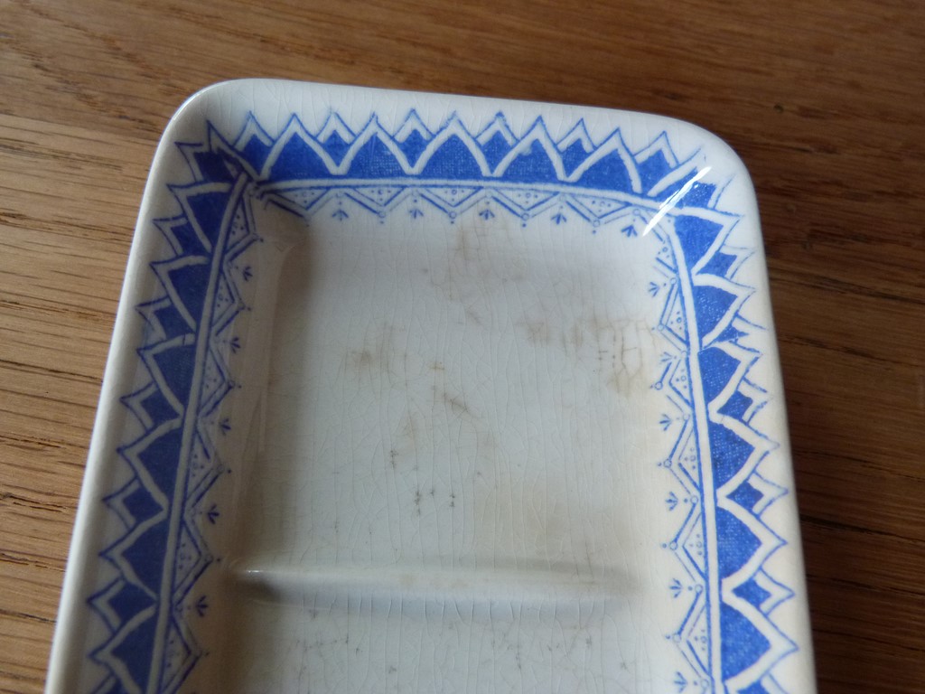 Couleur : blanc-crême avec une frise géométrique de couleur bleu