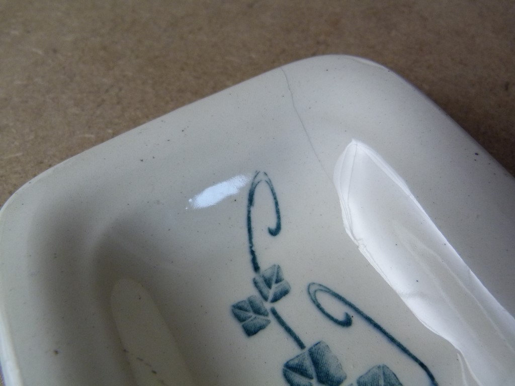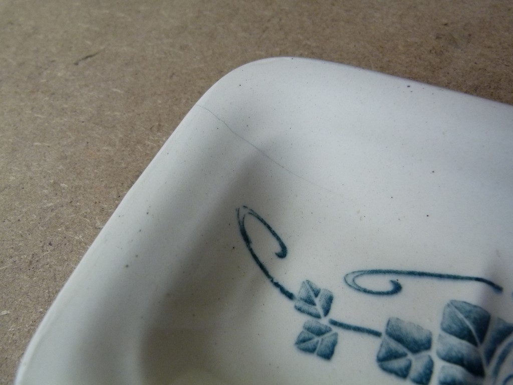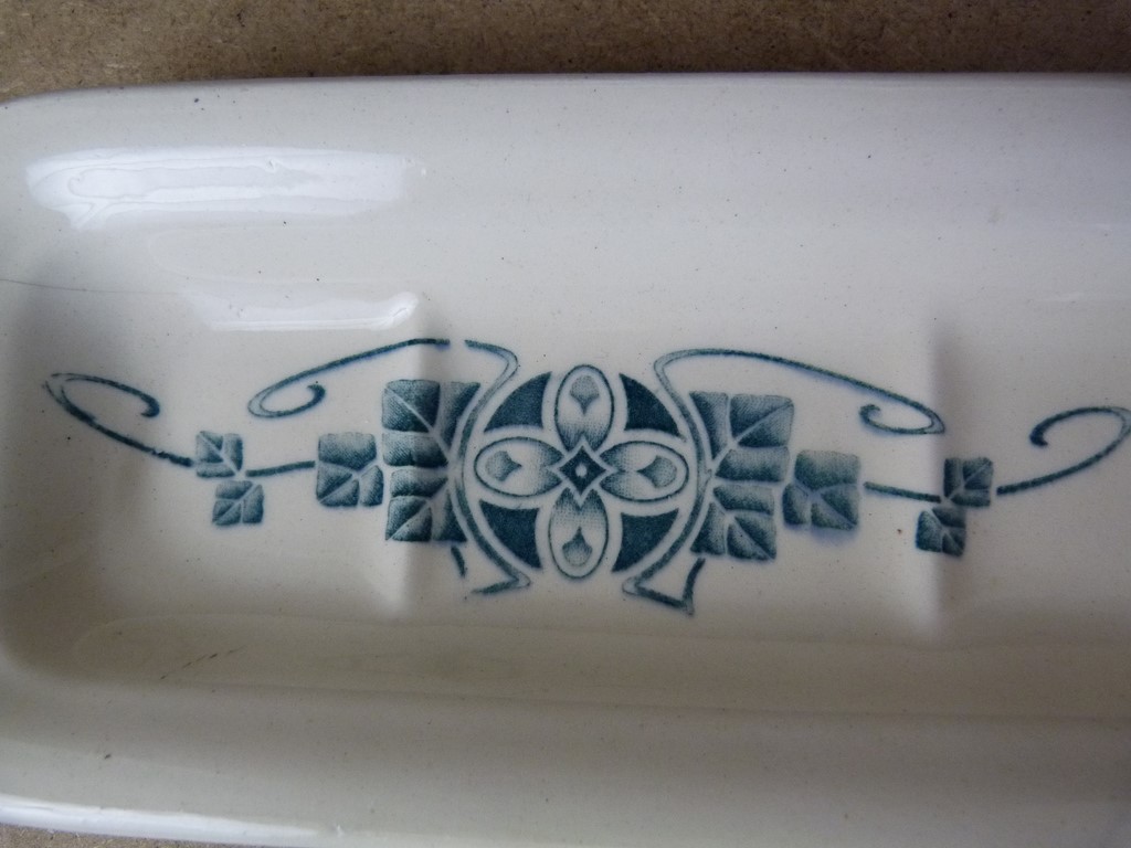Couleur : blanc-crême avec décor floral (en coup de fouet) de couleur bleu - période art nouveau