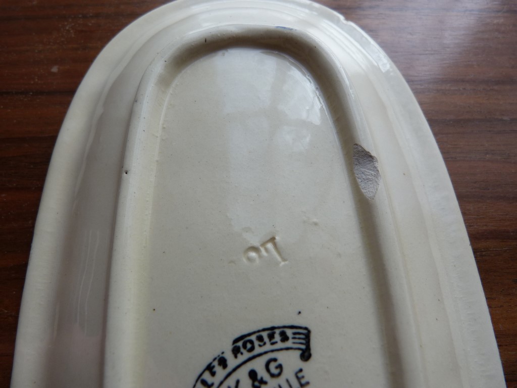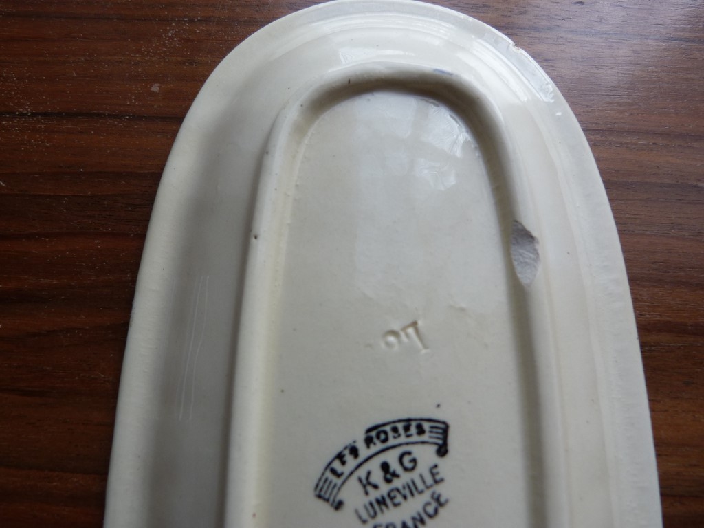 Ancien porte peigne en faïence trait bleu KG Lunéville Les Roses