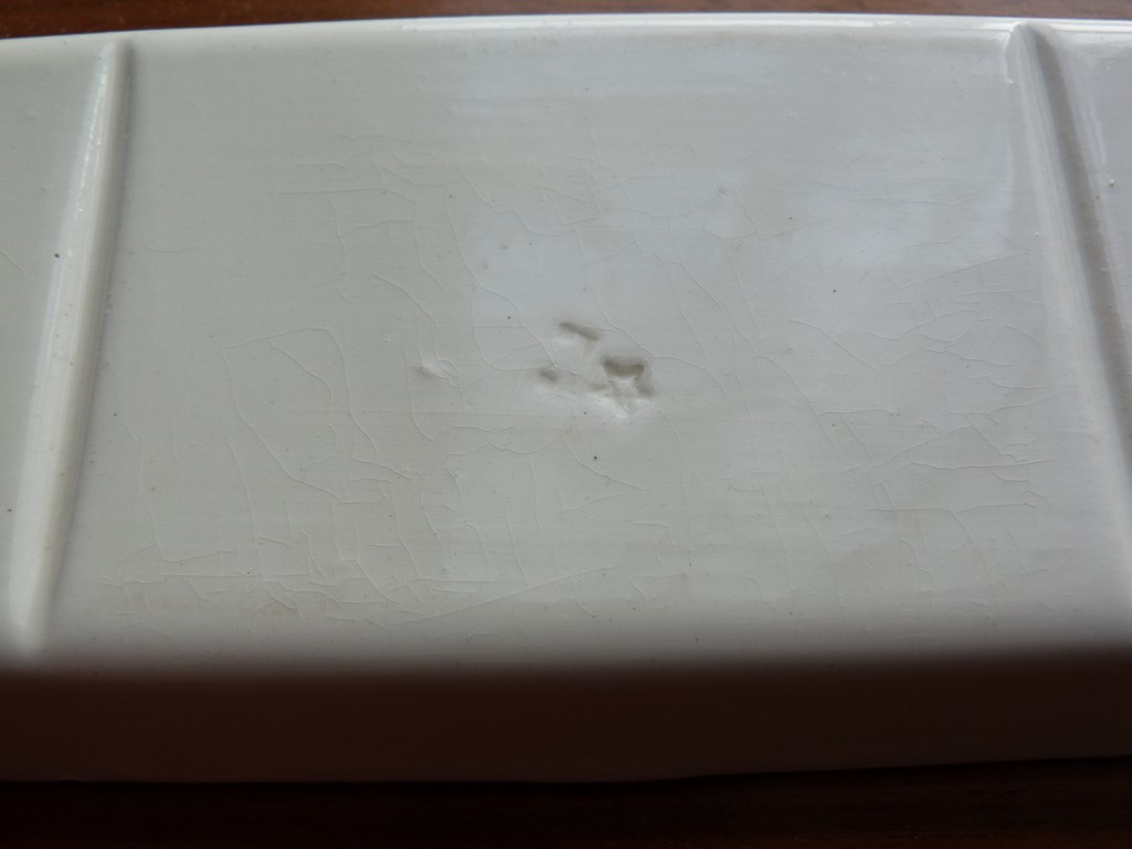 Pas de tampon au dos, mais une marque en creux (une étoile + une lettre)