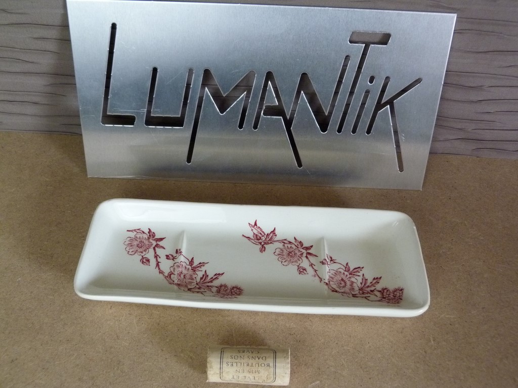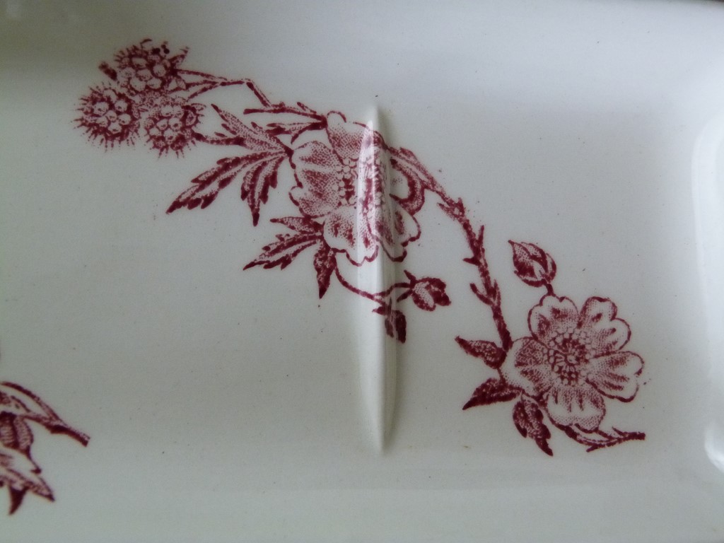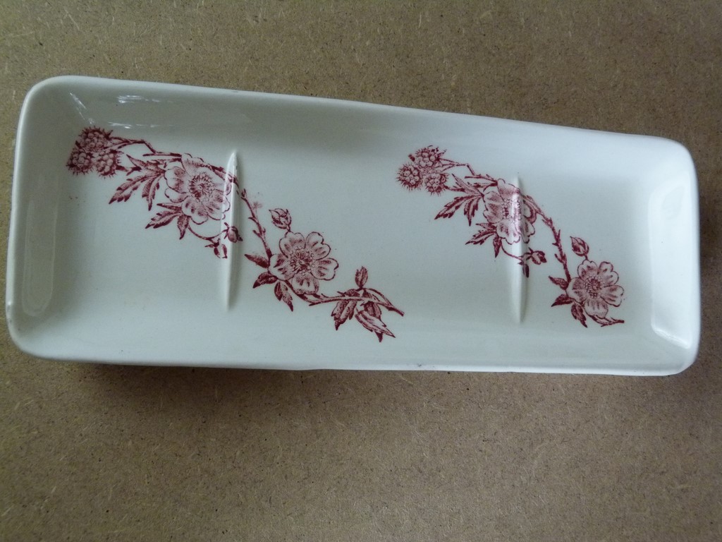 Ancien porte peigne faïence décor branche de mûrier rouge