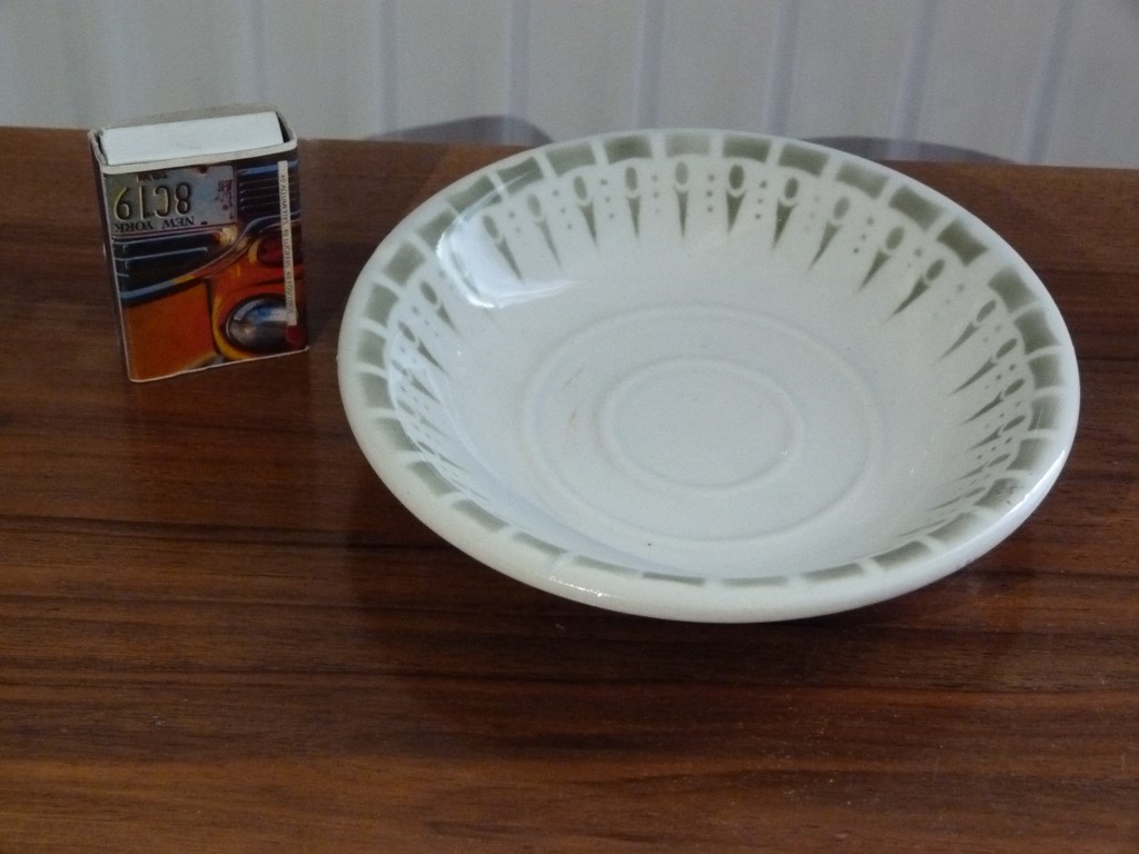 Un joli et ancien porte savon de forme ronde en céramique d'une faïencerie Française.