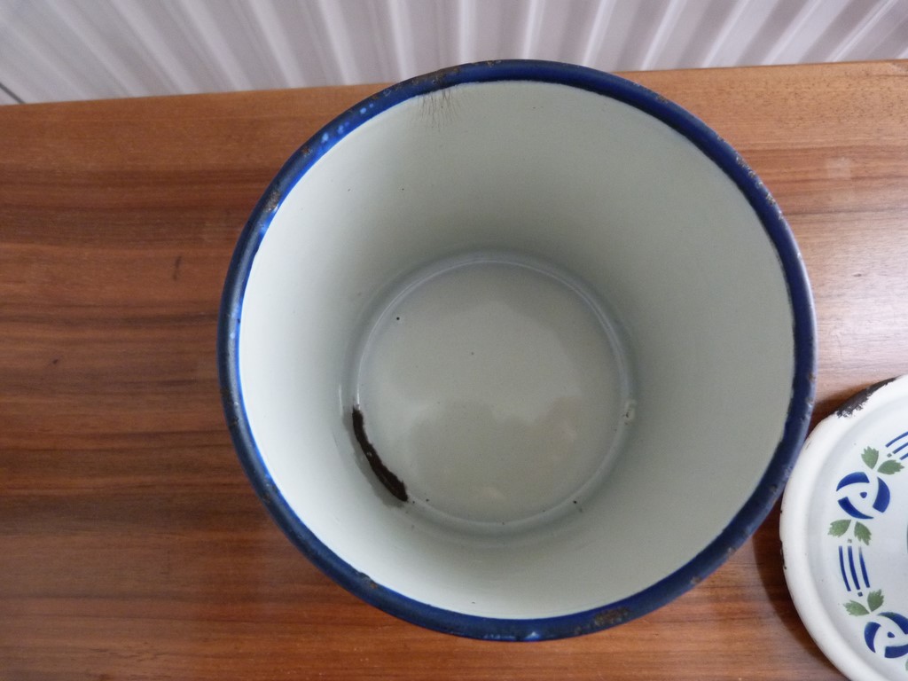 Bon état général, propre à l'intérieur, émaille bien brillant, pot de qualité malgré des petits défauts dû à l'âge, voir les détails ci dessous et les nombreuses photos :