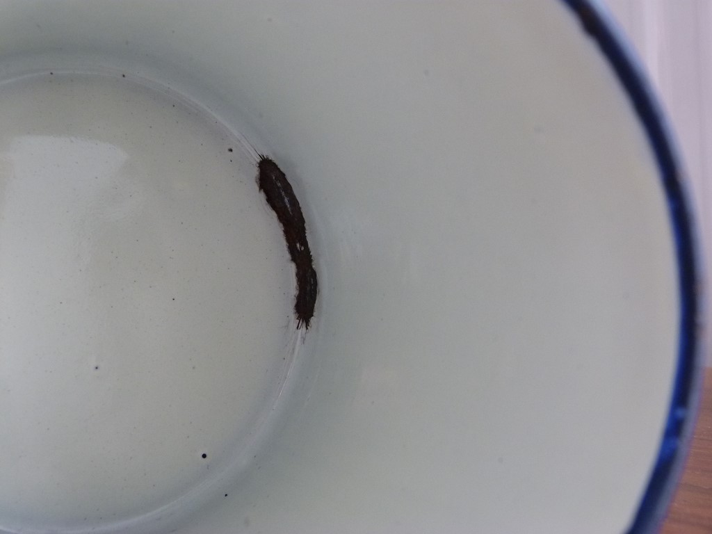 Des éclats d'émail courantes sur ce genre de produit ancien (mais qui fait tout son charme), sur le corps un manque au même endroit à l'intérieur et sur l'extérieur, le couvercle à lui plusieurs éclats dessus, dessous et le bouton central. Des petites bulles d'air lors de la cuisson de l'émail font des petits points.