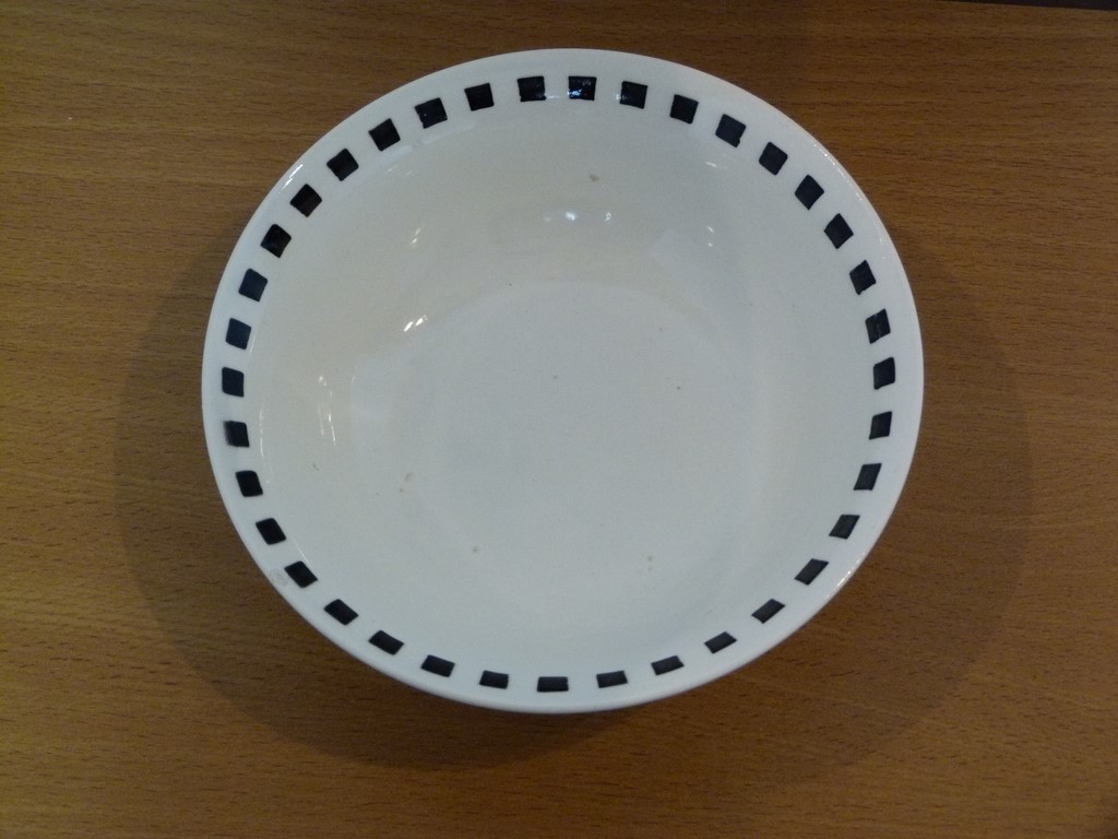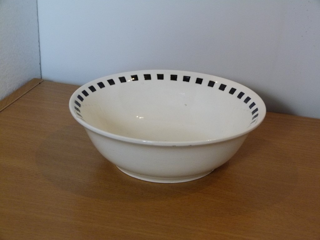 Pas de tampon au dos. Couleur du fond blanc-crême, avec une frise de carrés noirs