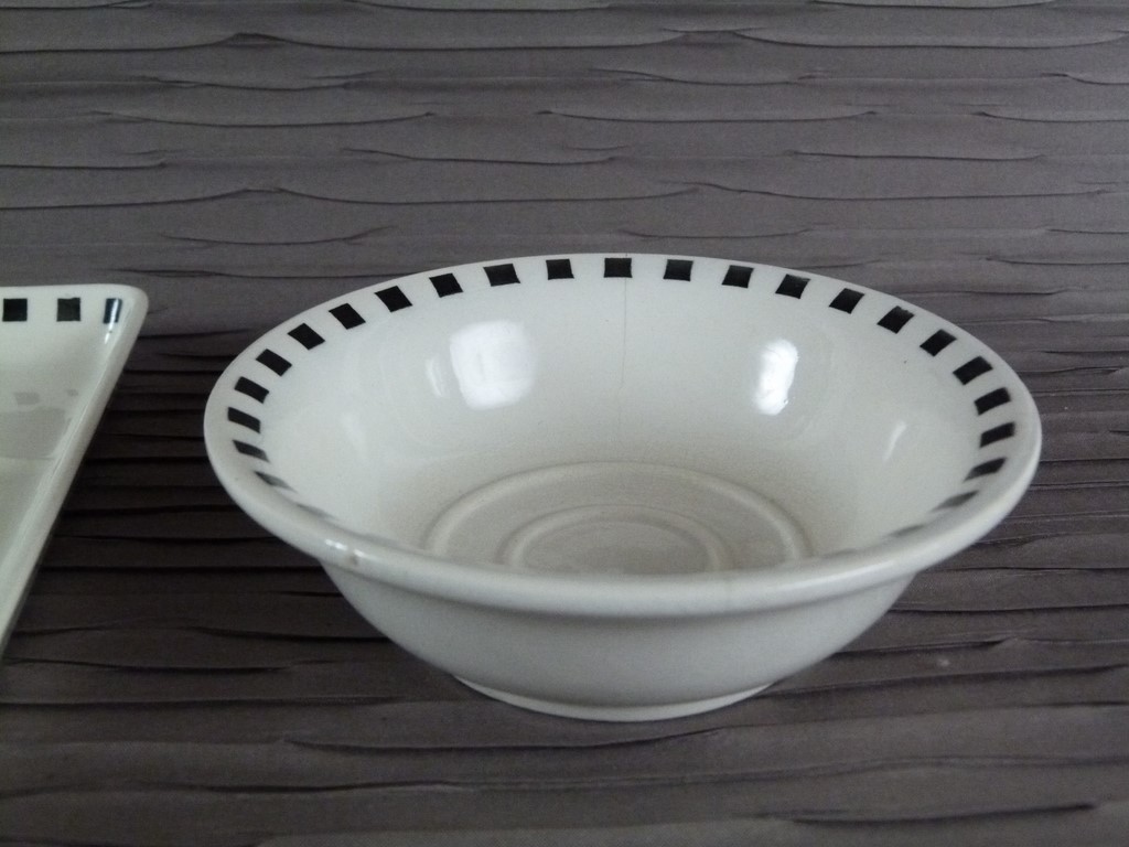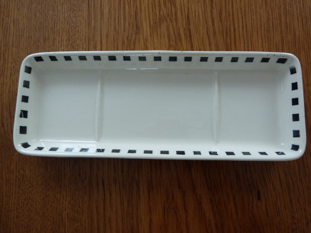 Lot ancien porte peigne + 1 porte savon + porte éponge décor carré noir
