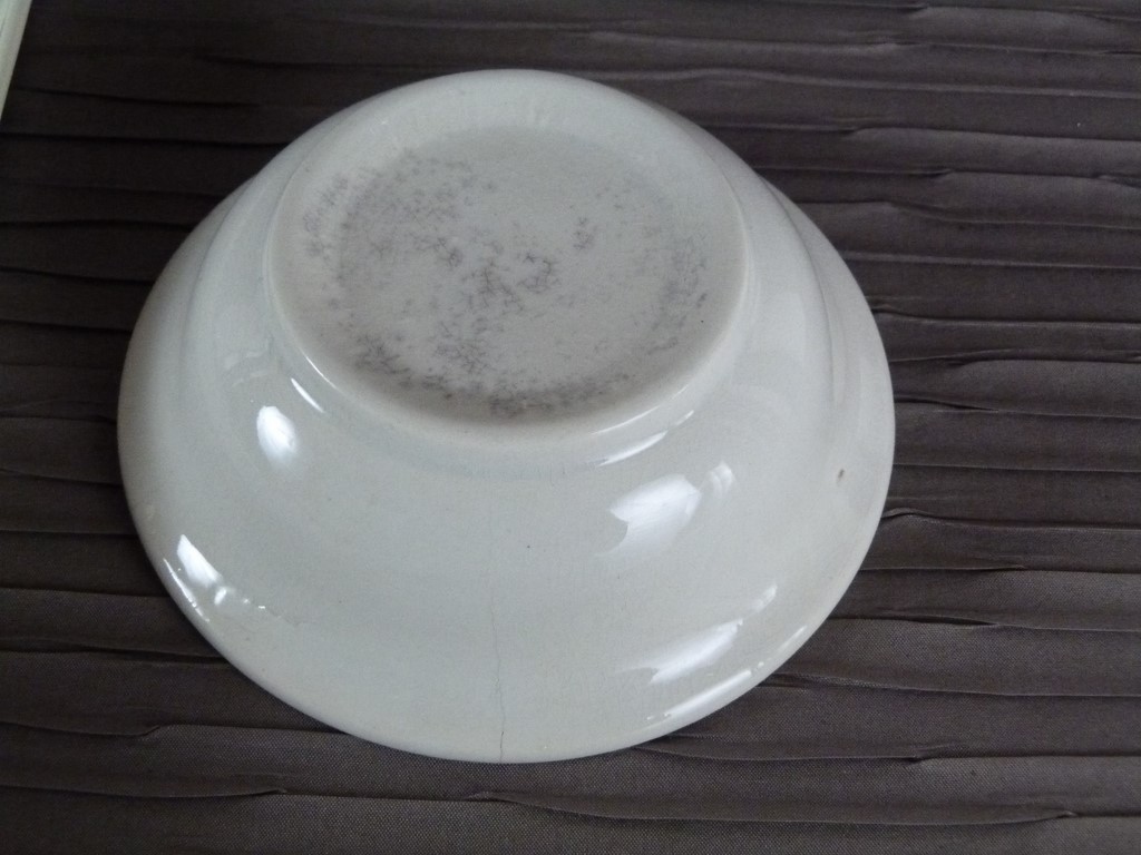Bon état et belle brillance, à noter des petits défauts : 1 petit éclat de céramique en bordure du porte peigne, et sur le porte savon 2 fèles, une toute petite (ne se voit pas) et l'autre visible sur les photos, à l'arrière il y a des tâches sombres (sans gravité).