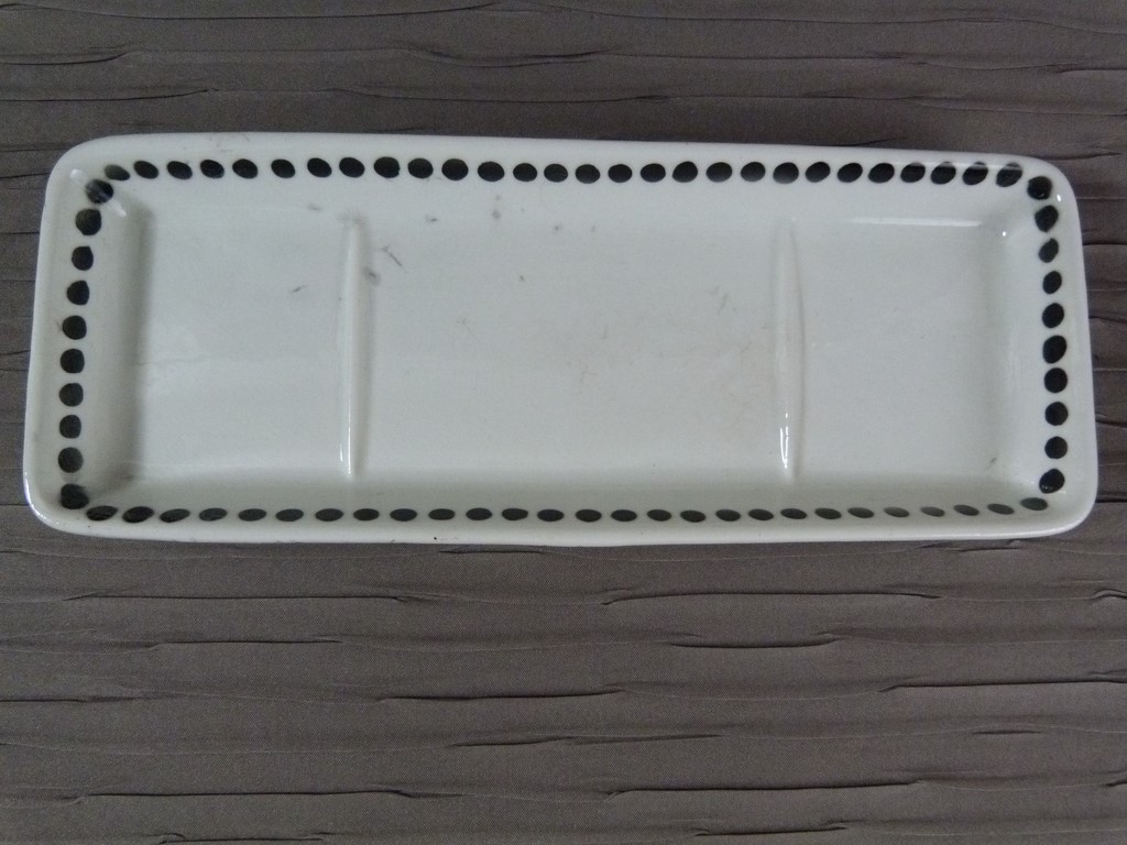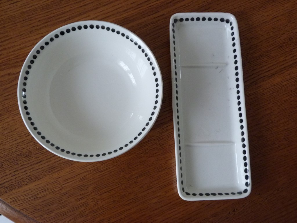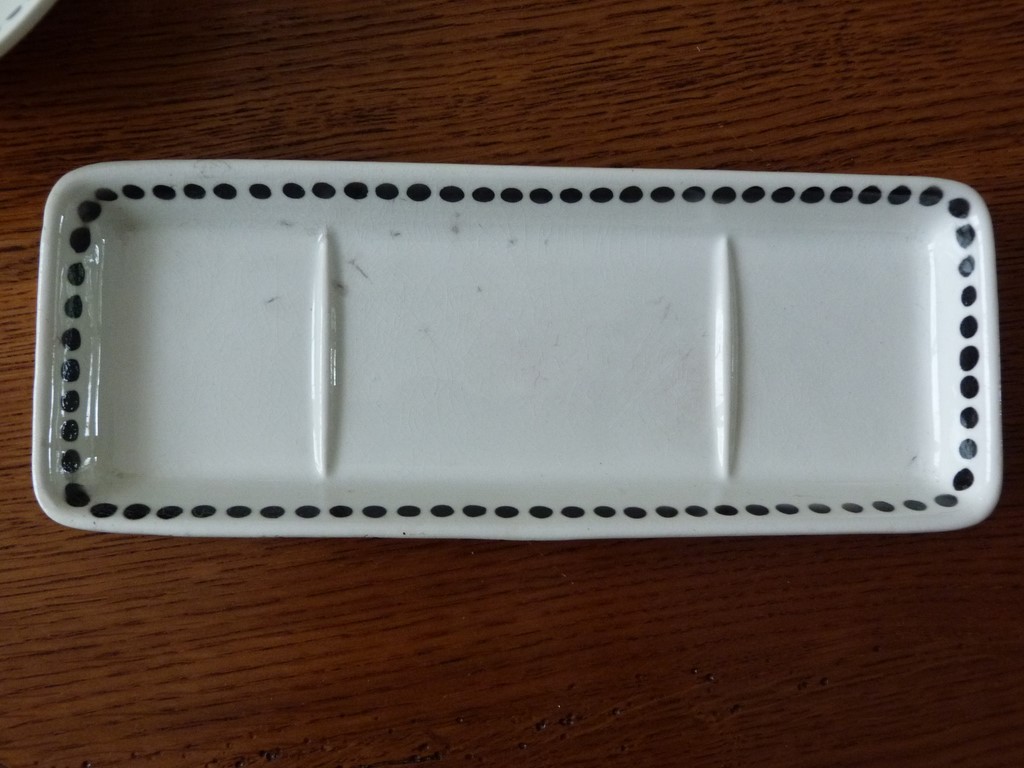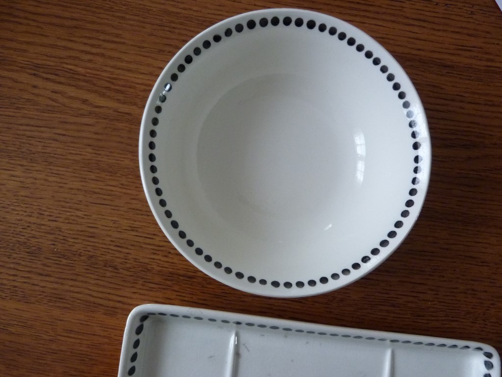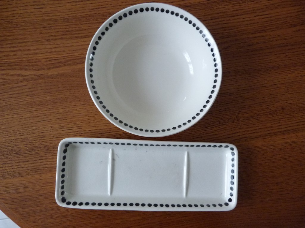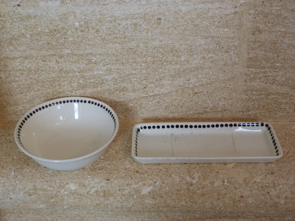 Lot ancien porte peigne + porte éponge céramique décor points noirs