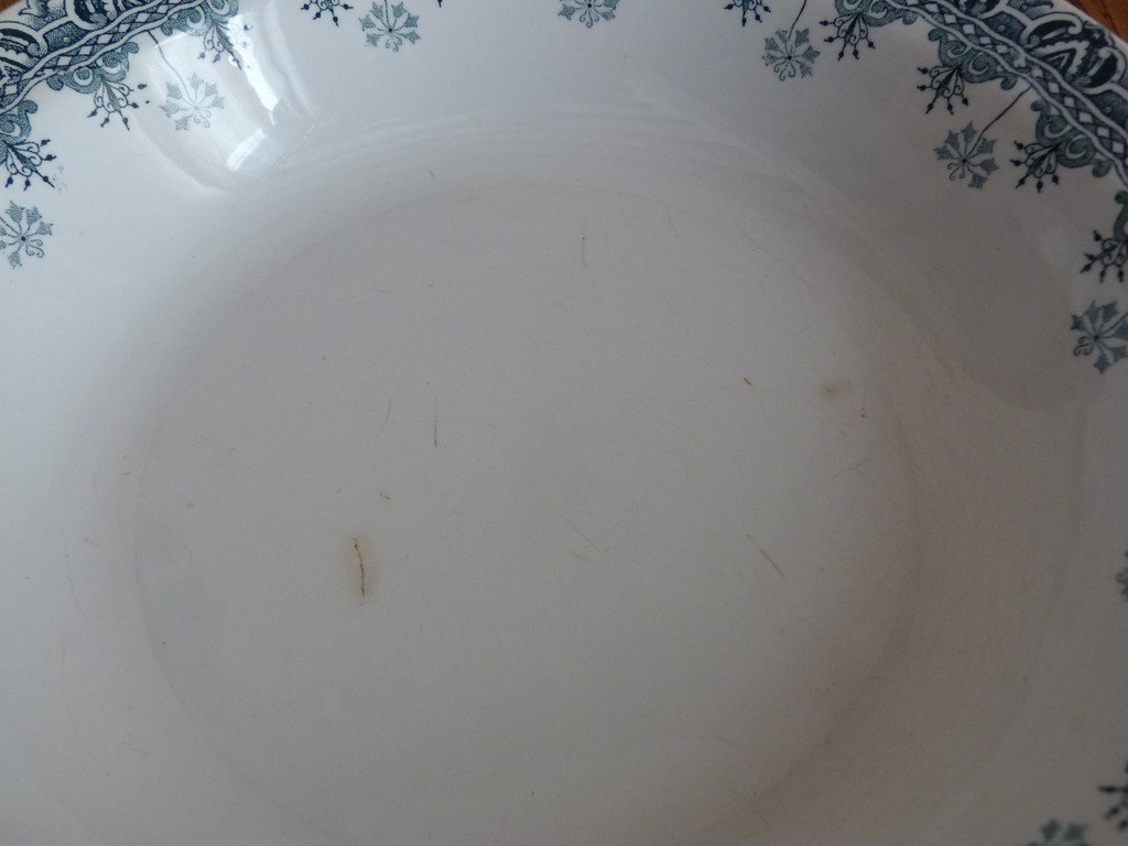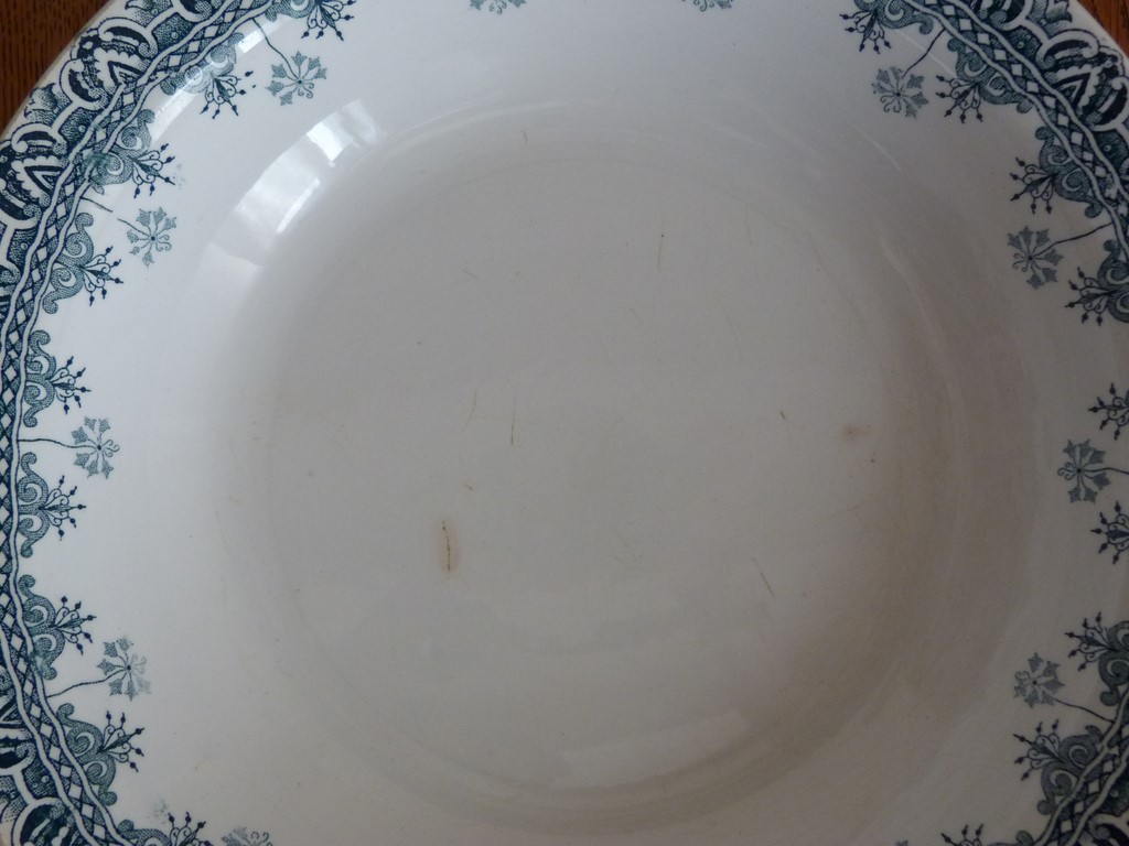 Un ancien plat rond et creux (profond), datant de la fin XIXème ou tout début XXème.