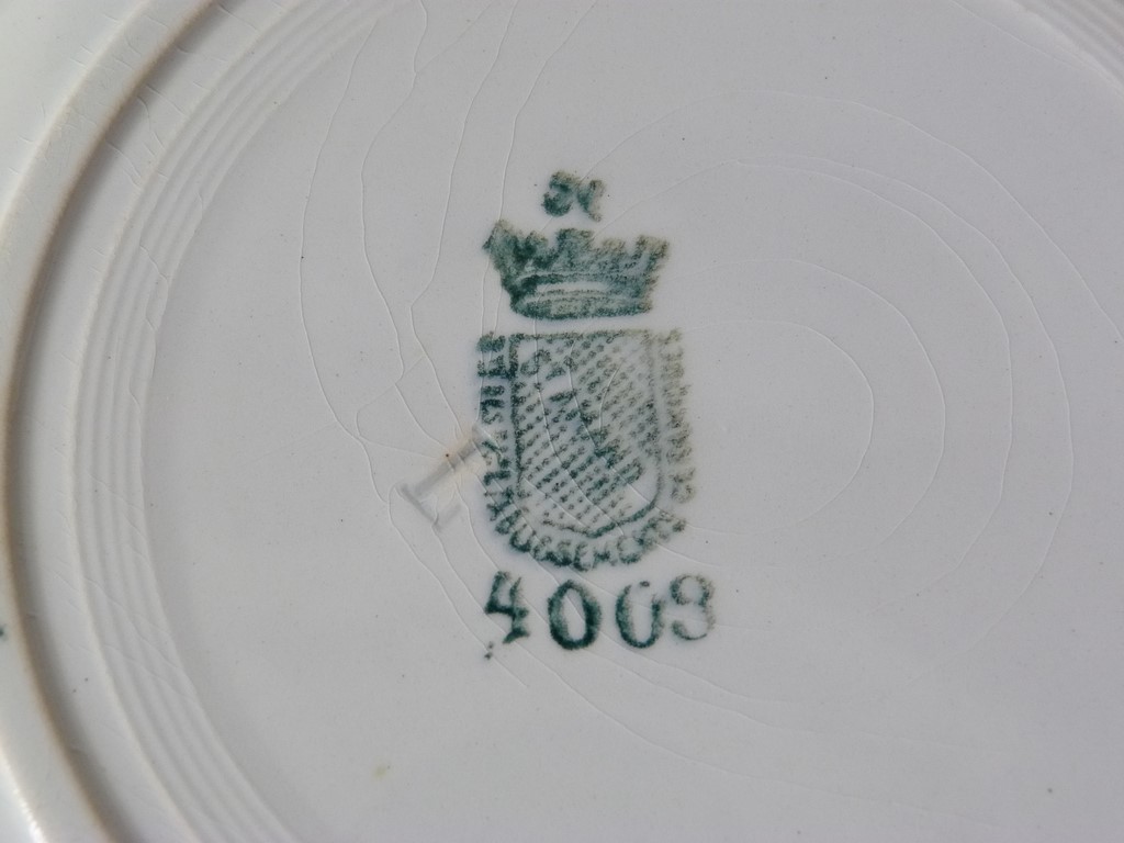 Un lot composé de 6 assiettes plates, anciennes, tampon au dos : Sté des grands Etablissements céramiques St AMAND, modèle : 4003