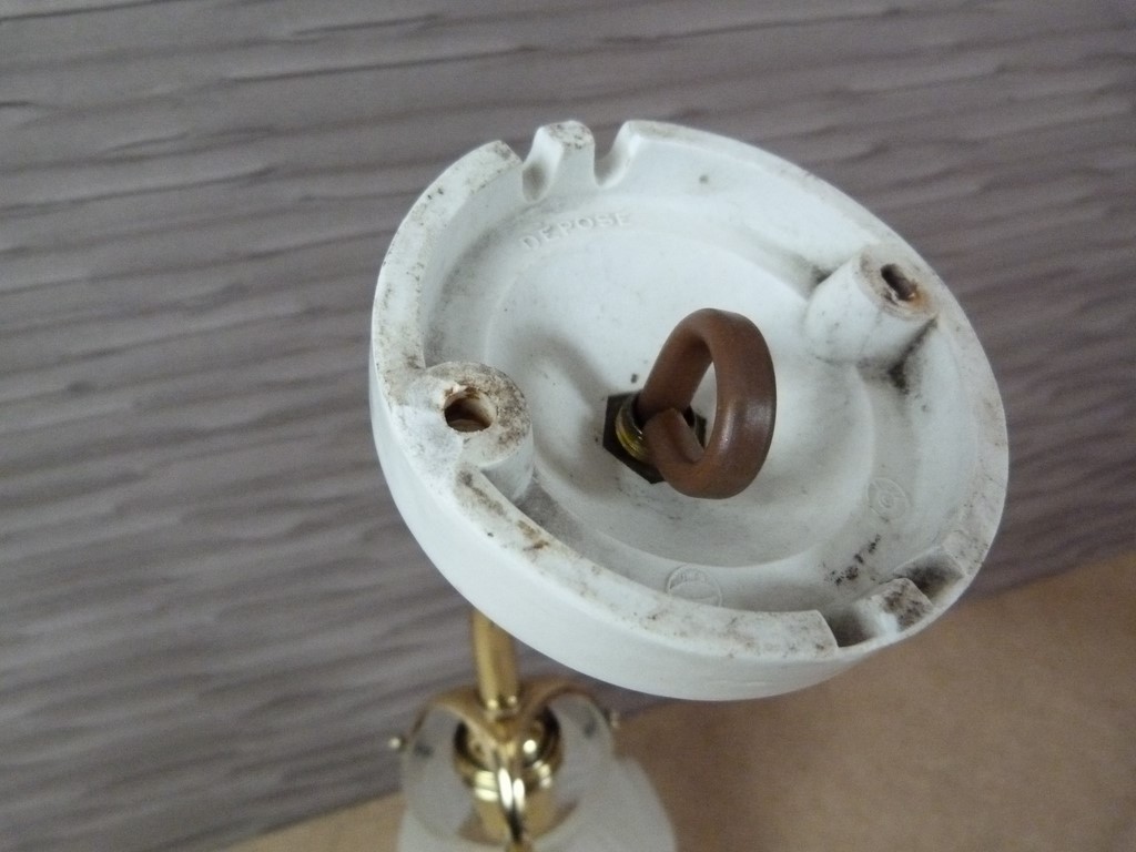 La porcelaine de plafonnier est en excellent état (grand modèle 7,5 cm), à motifs décoratifs, à noter un micro éclat en bordure sur le dessous (ne se voit pas).
