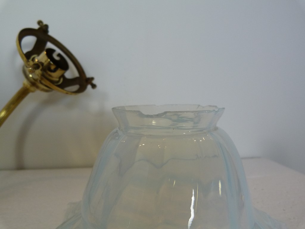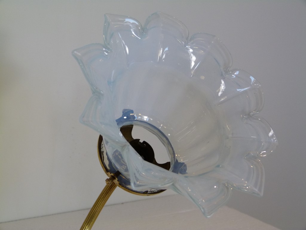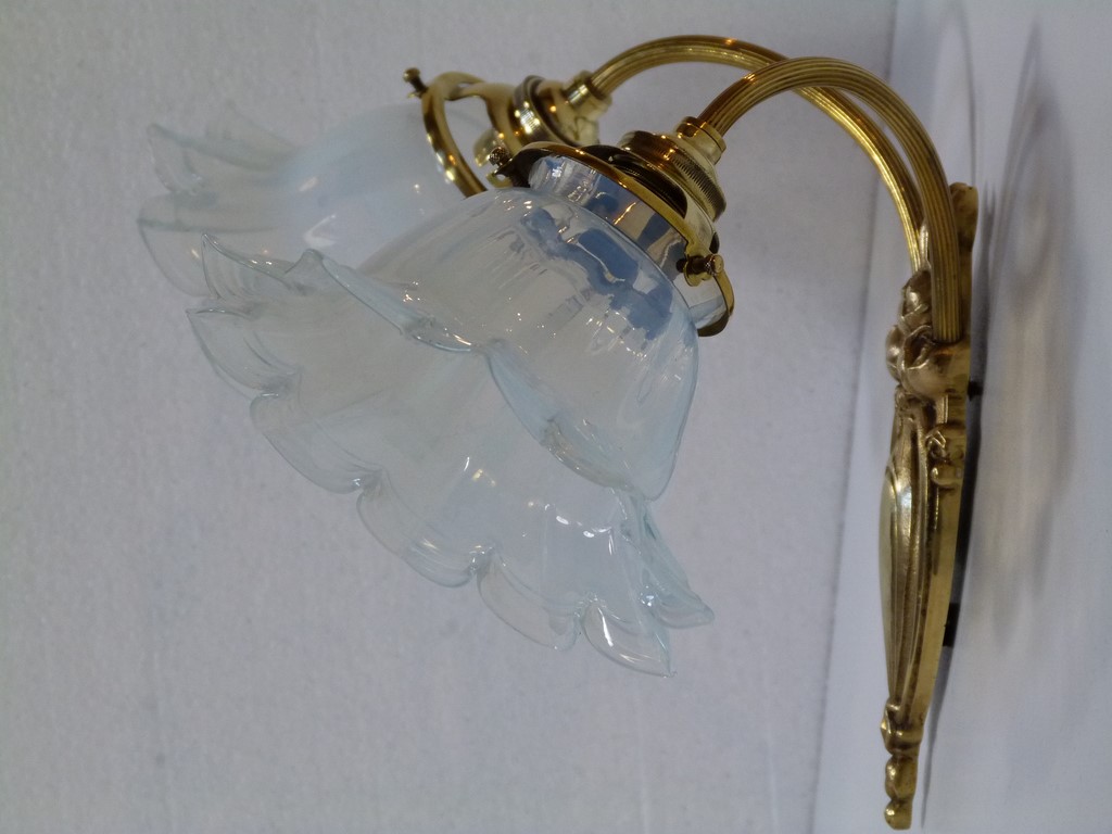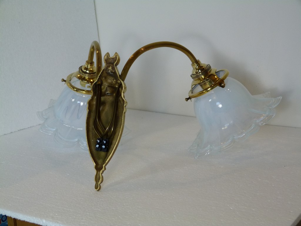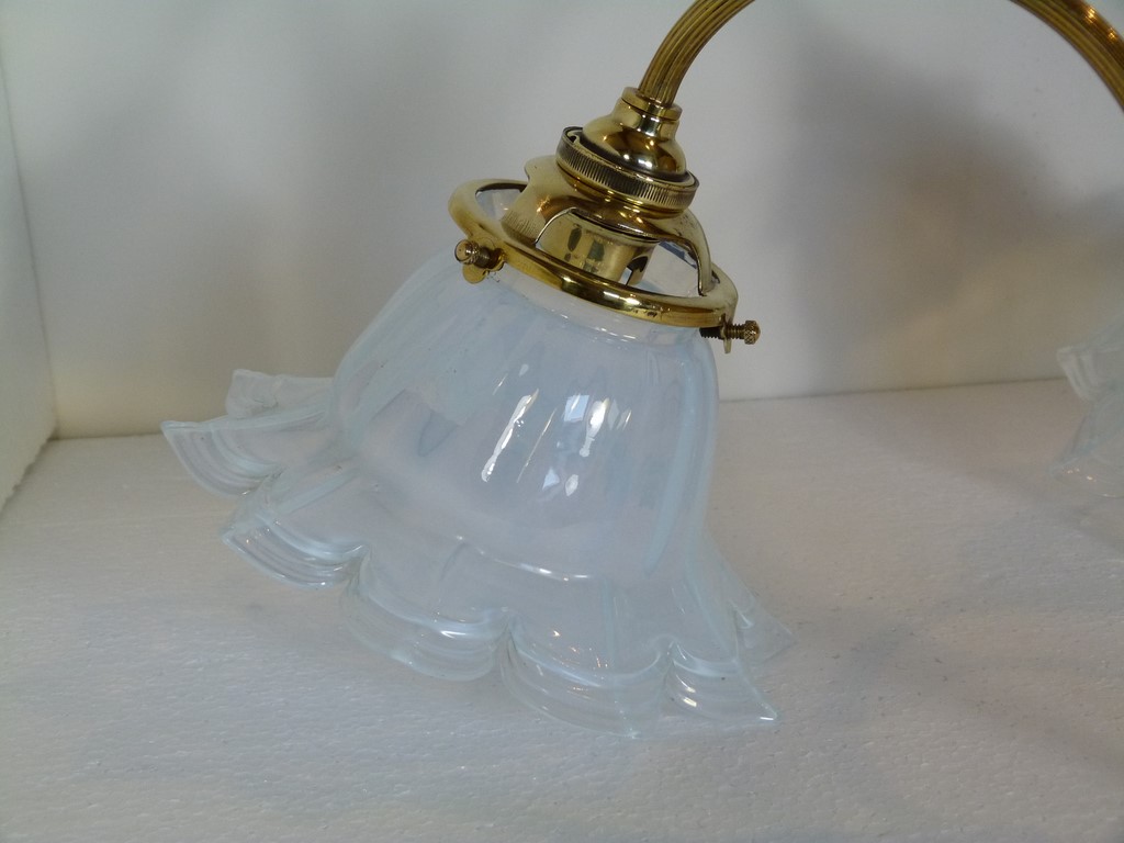 Applique ancienne en bronze double feux art déco - Tulipes florales opalescentes