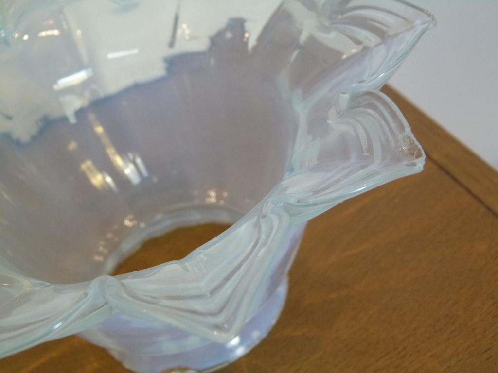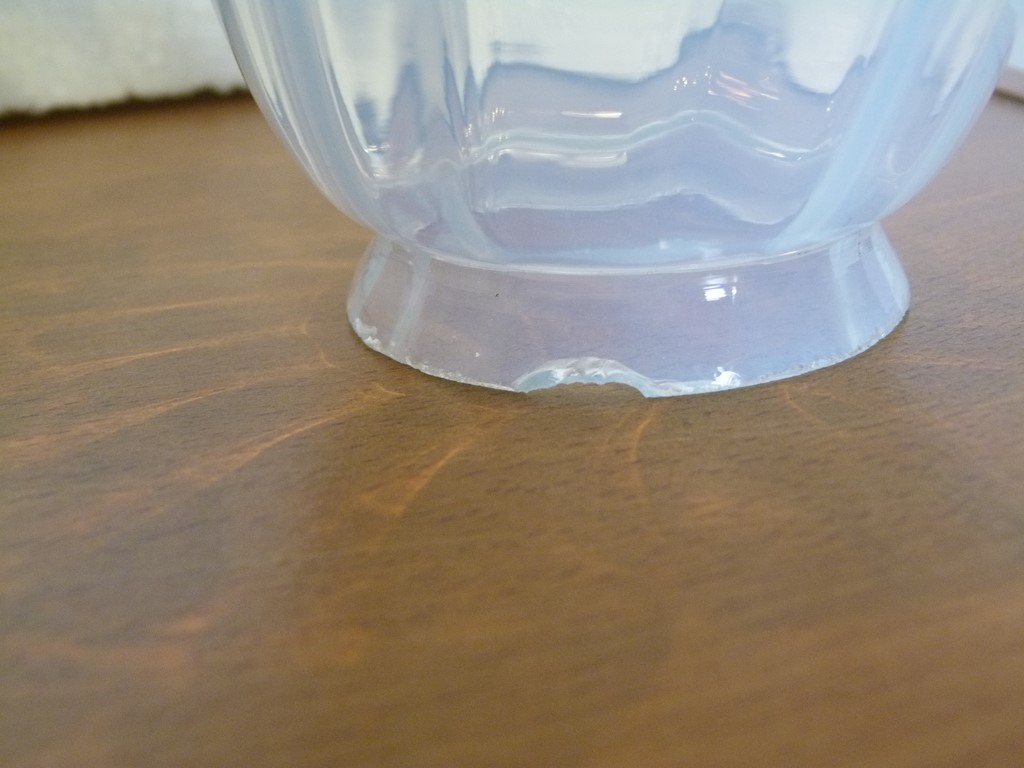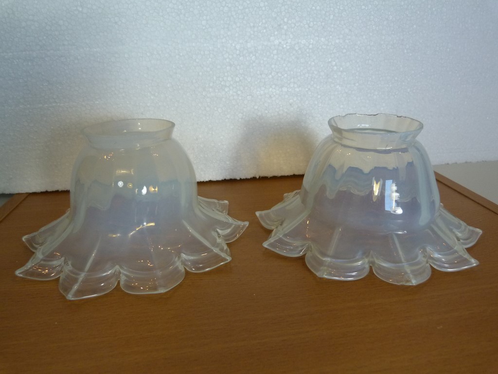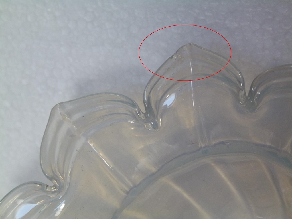 Les tulipes sont en bon état. A signaler sur l'une d'elles des petits éclats de verre sur la collerette et sur la pointe d'une pétale. Voir les nombreuses photos signalant les petits défauts dont une marquée par une cercle rouge, ceux de la collerette seront cachés un fois la tulipe montée, celui de la pointe est très discret car petit.