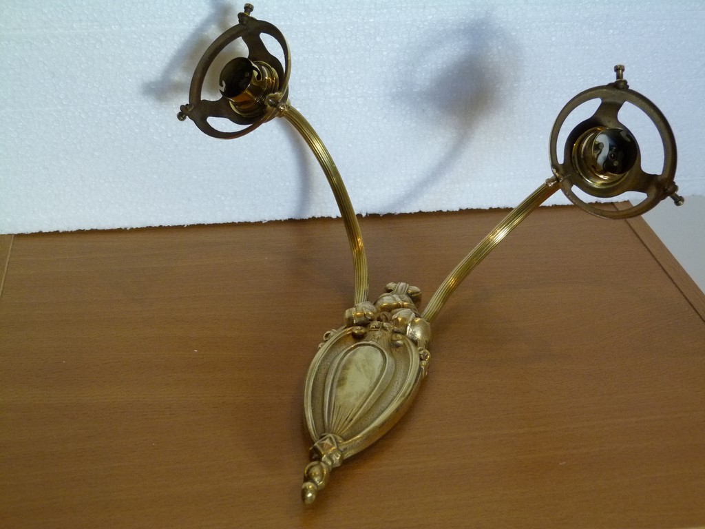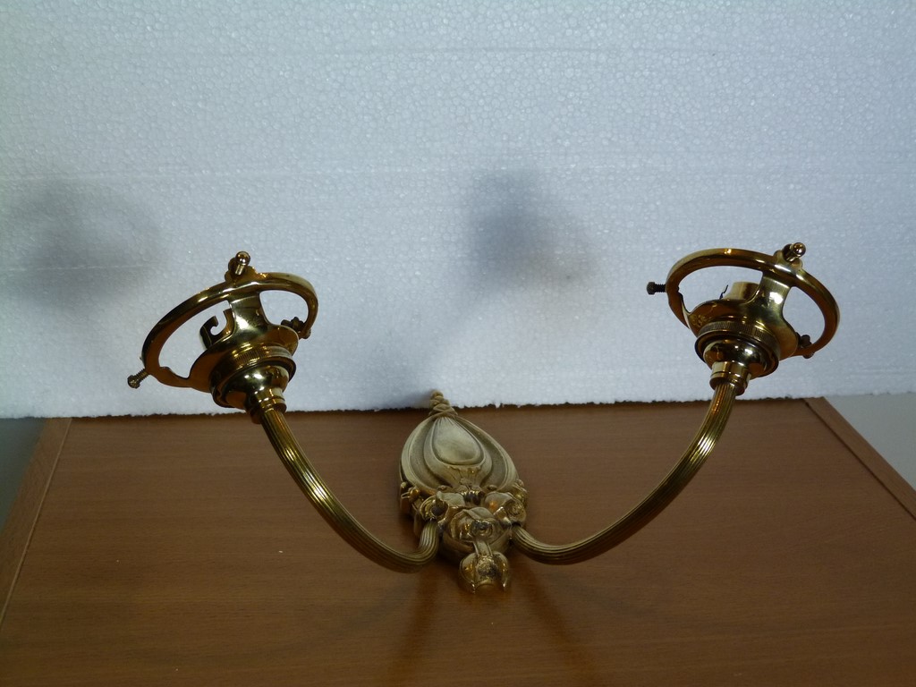 Belle qualité - Équipée de 2 douilles anciennes à bague B22 laiton et de 2 griffes également en laiton.