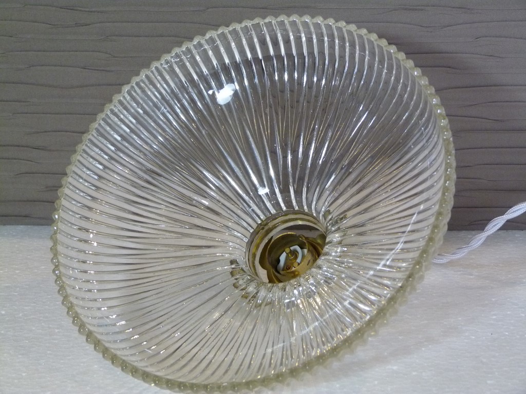 L' abat jour est en verre transparent et à facettes, il est en très bon état.