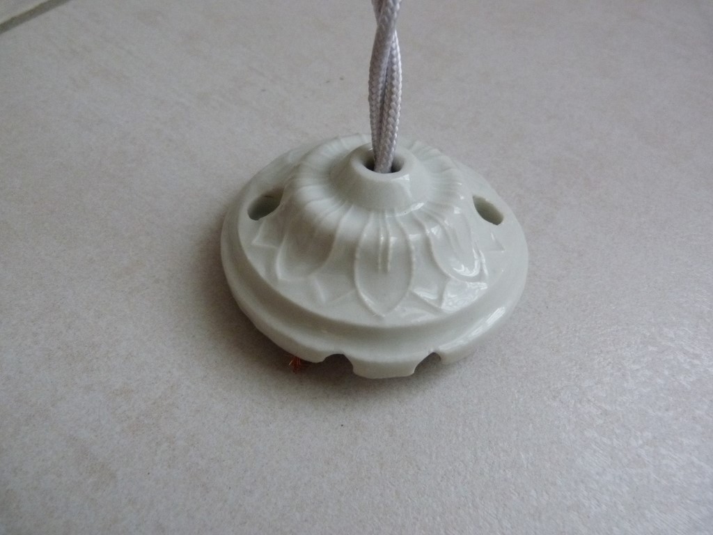 - et pour la porcelaine de plafonnier, mais elle sera en très bon état (suivant la marchandise en stock). Il pourrait y avoir parfois un petit éclat sur les plots arrières (ne se verra pas et n'empêchera pas le maintien de la suspension).