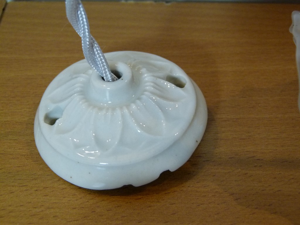 - et pour la porcelaine de plafonnier, mais elle sera en très bon état (suivant la marchandise en stock). Il pourrait y avoir parfois un petit éclat sur les plots arrières (ne se verra pas et n'empêchera pas le maintien de la suspension).