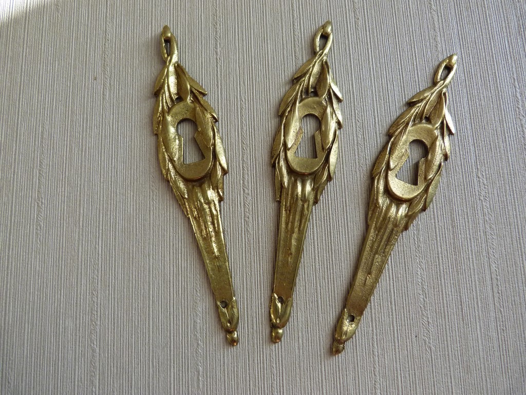 Ancienne entrée de clé pour serrure en bronze, motif Louis XVI
