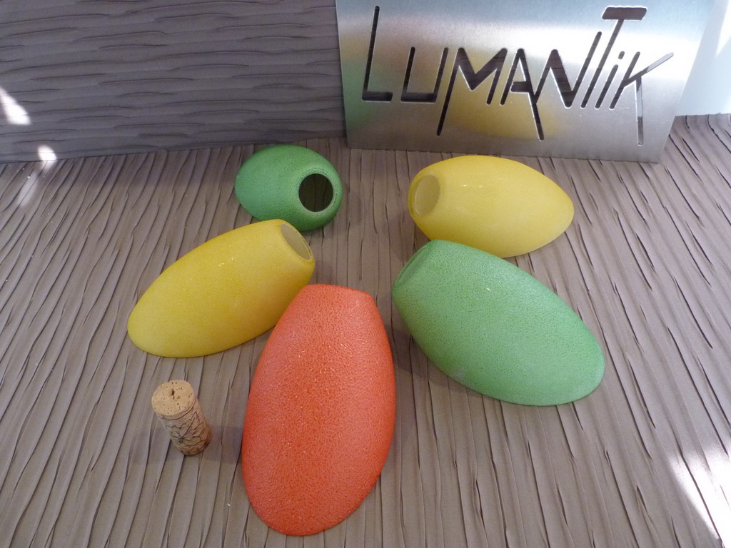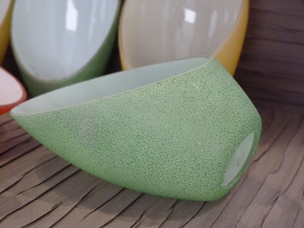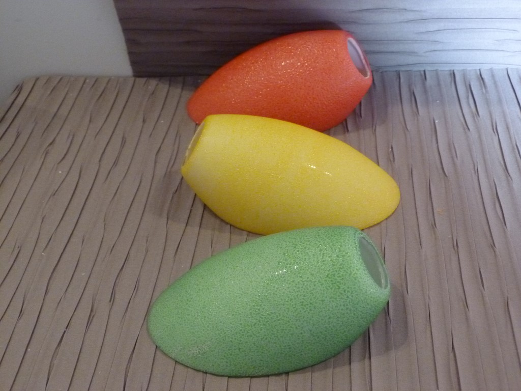 A vendre à l'unité pour réassort ou pour création : Une tulipe abat jour verre tronqué granité couleur vive pour lustre ou applique année 50 (dans le goût des lustres italien de stilnovo).
