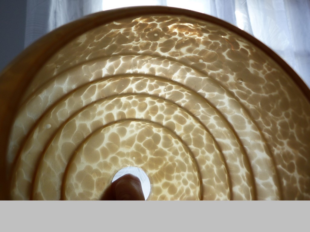 Dimensions : Ø maxi environ 15,4 cm - Hauteur : 13,1 cm - Ø du trou pour la douille 2,7 cm